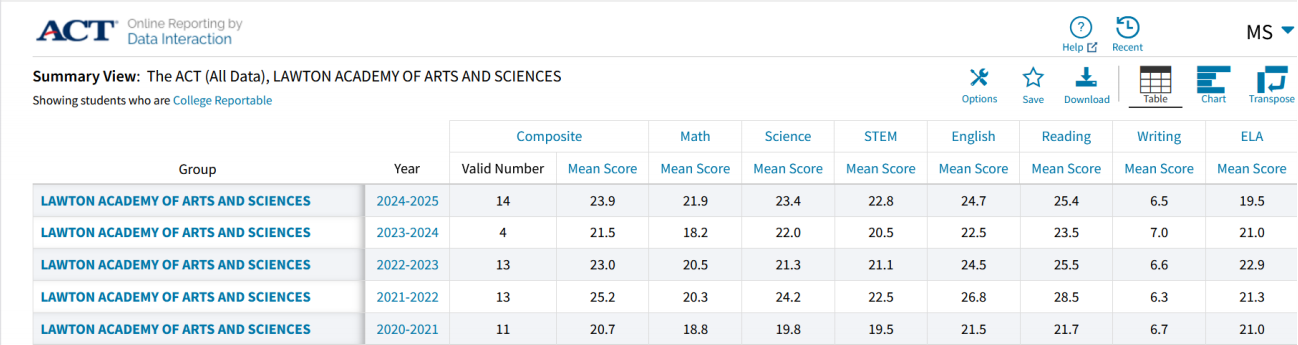 Lawton Academy’s 5-Year ACT Trends